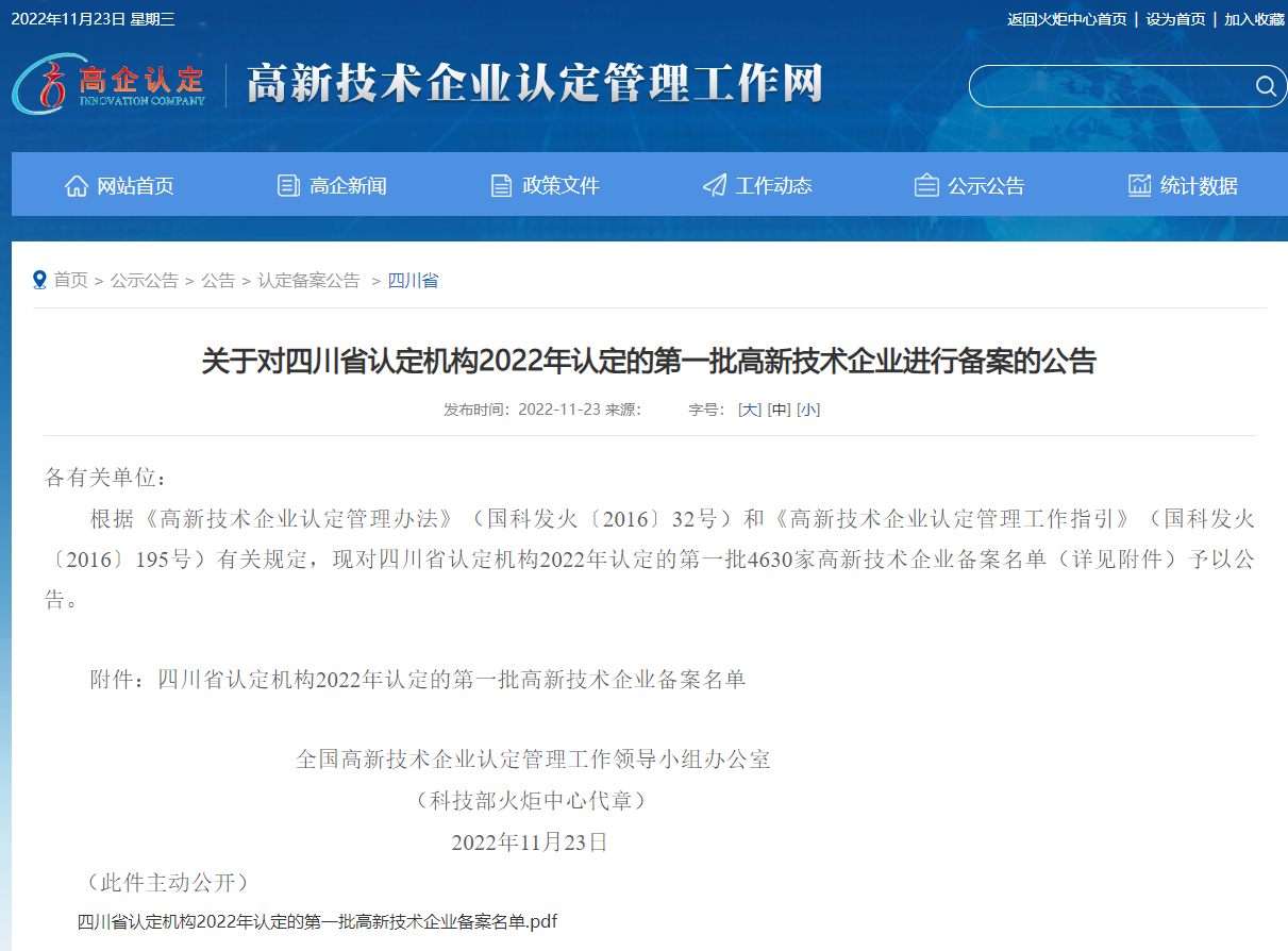 近日,由全國高新技術(shù)企業(yè)認(rèn)定管理工作領(lǐng)導(dǎo)小組辦公室發(fā)布關(guān)于四川省2022年度第一批備案高新技術(shù)企業(yè)名單,四川省天晟源環(huán)保股份有限公司(下稱“天晟源環(huán)?!被颉肮尽保┪涣衅渲?,成功取得“國家高新技術(shù)企業(yè)”認(rèn)定。