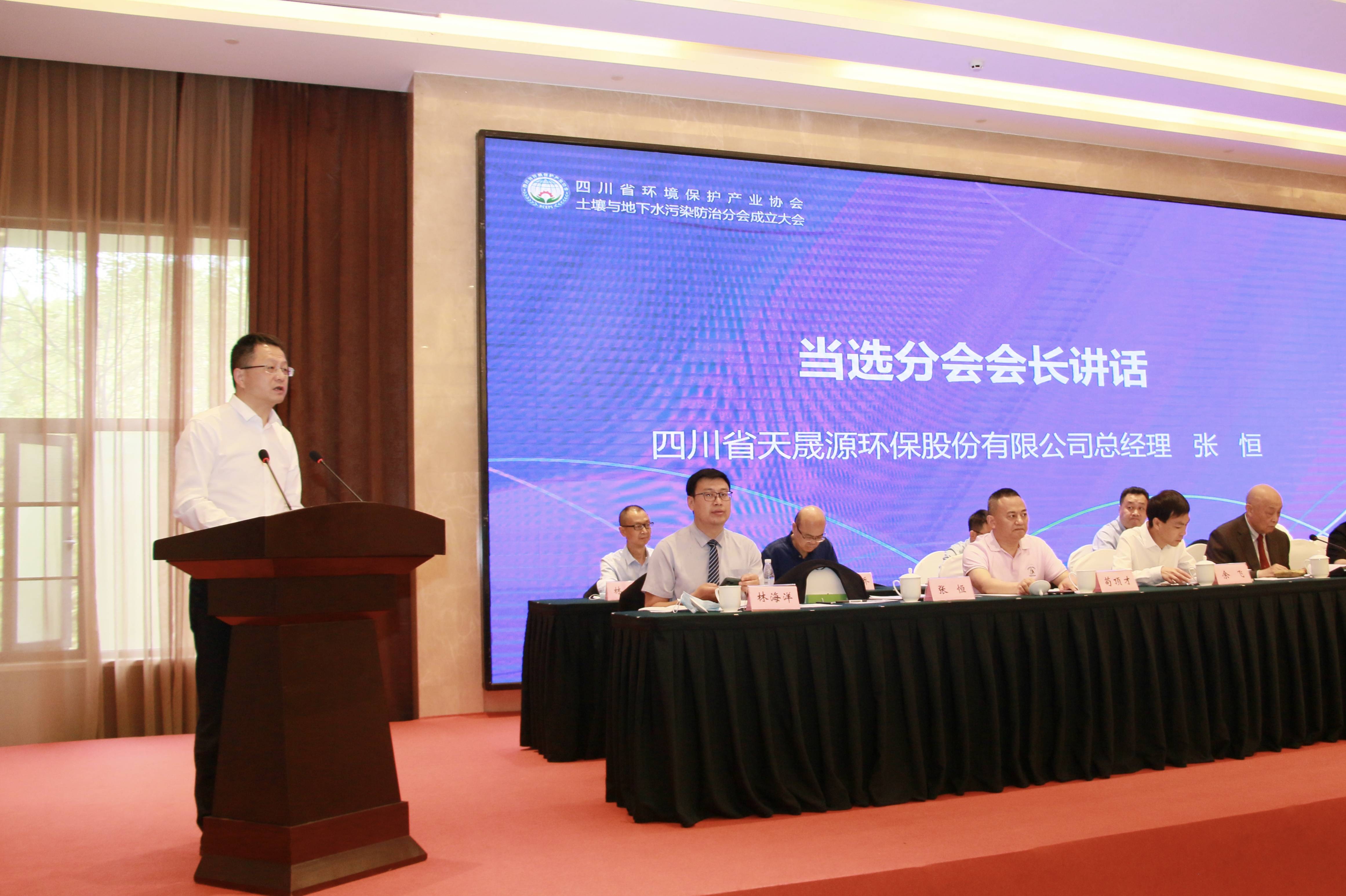 分會(huì)會(huì)長、天晟源環(huán)??偨?jīng)理張恒在發(fā)言中表示:此次分會(huì)的成立是川環(huán)協(xié)對天晟源環(huán)保在土壤與地下水領(lǐng)域雄厚技術(shù)實(shí)力的充分肯定,天晟源環(huán)保將與該領(lǐng)域的專家和企業(yè)攜手共進(jìn)、開拓進(jìn)取,大力建設(shè)分會(huì)服務(wù)功能,共同營造更好的行業(yè)環(huán)境。同時(shí),分會(huì)也將明確各項(xiàng)重點(diǎn)工作,在協(xié)會(huì)的支持與指導(dǎo)下匯聚全體會(huì)員的智慧和力量,不斷推進(jìn)四川省土壤與地下水污染防治行業(yè)的高質(zhì)量、高水平發(fā)展,為四川省經(jīng)濟(jì)高質(zhì)量發(fā)展譜寫好環(huán)保人的新篇章。